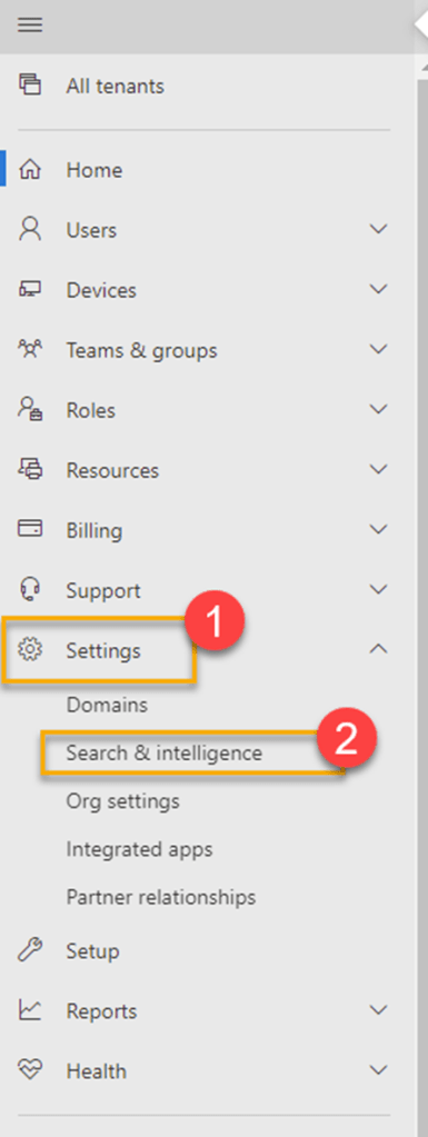 - Click Settings->Search and Intelligence