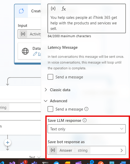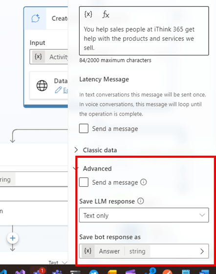 - Assign the response from the model into a variable, use Text Only.