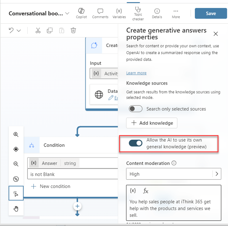 Well, Copilot Studio can be configured to use an external hosted AI model for example using Azure AI Services and GPT-4o. This allows us to use a more powerful or more suitable language model such as GPT-4o instead of the out-of-the-box LLM that Microsoft currently provide.