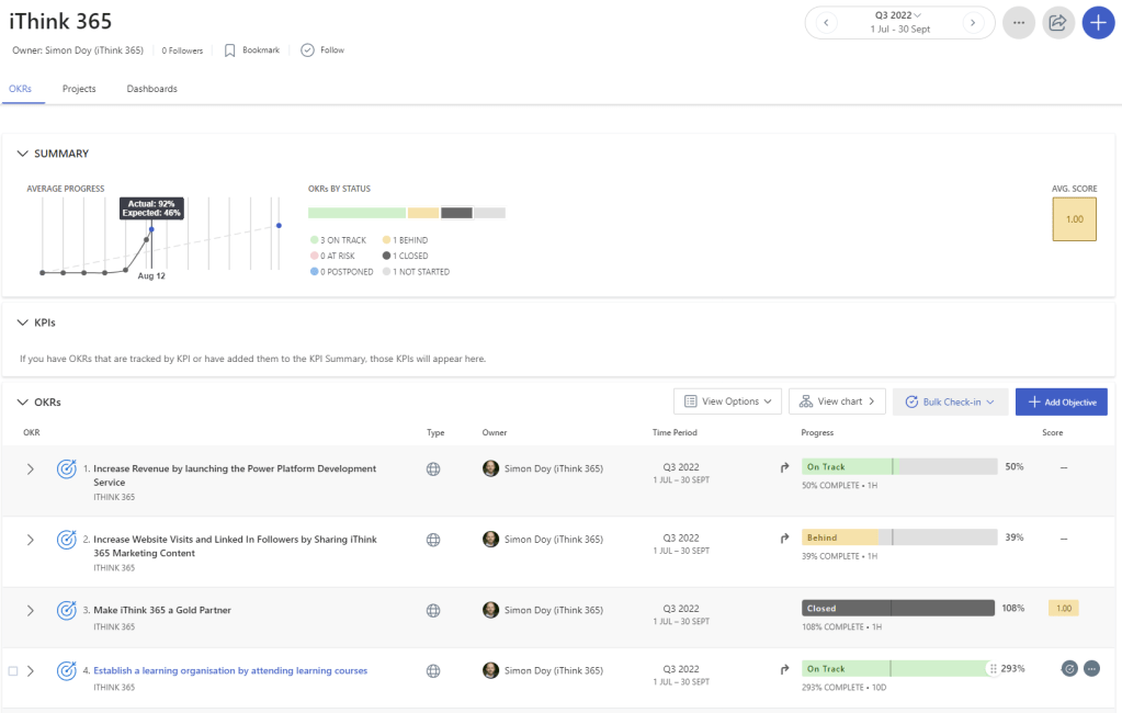 I do think the later point comes down to the process and culture of the organization. I expect that the team at iThink 365 will soon get into the swing of keeping it updated. I will use the 1-2-1s to discuss about the progress of their objectives which will help keep them front of mind.