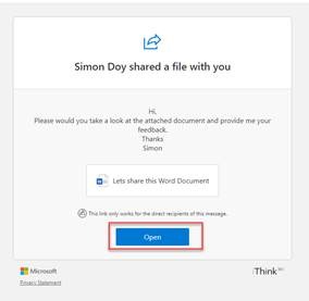 They simply click on Open. They will then asked to verify their identity via verification code.