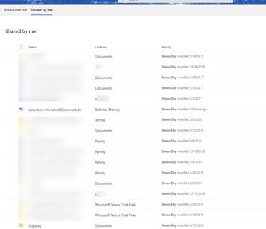 Now all the files that you have shared with others will be displayed. The files that have been shared do not have to be hosted in One Drive, they may also be from SharePoint or Microsoft Teams.