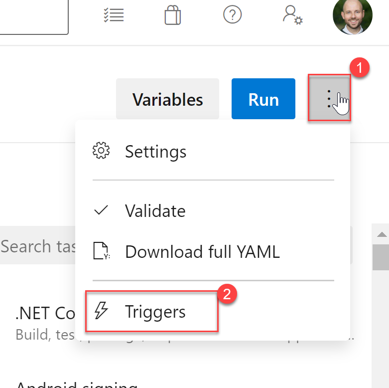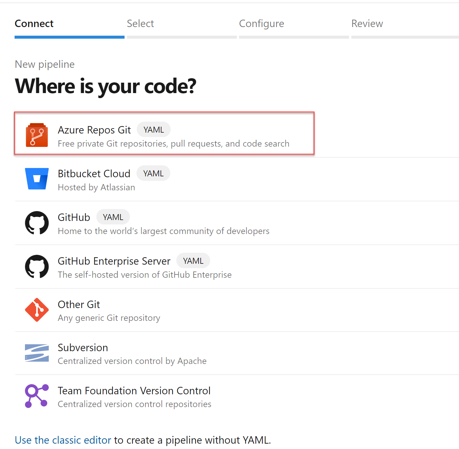 - The select an existing YAML file task pane will appear and read all the YAML pipelines in the repository.