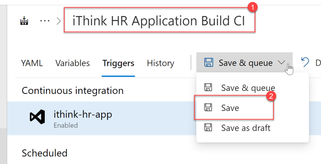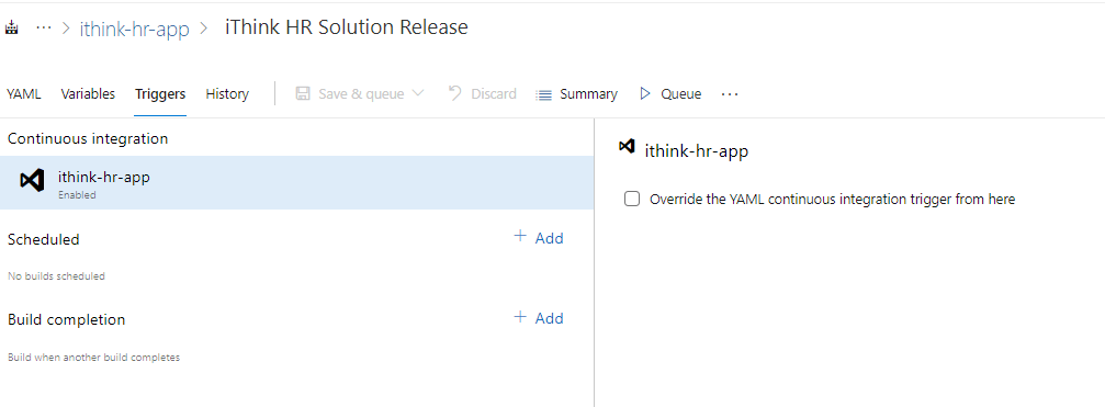 - At iThink 365 we use the naming convention [Application Name] Build CI.