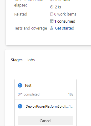 So, take the example pipeline and remove the stages that you do not need. Make sure you update the PowerPlatformEnvironmentName to the name of your service connection for the environment.